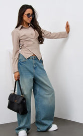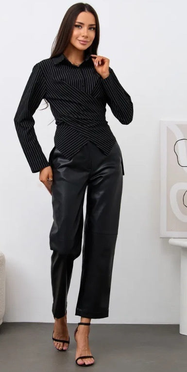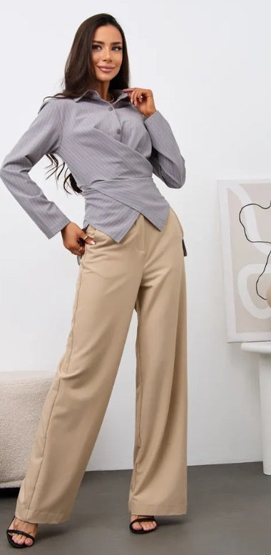 Women's Designer-style Shirt With A Turn-down Collar Slanted Front Placket And A Fitted Waist